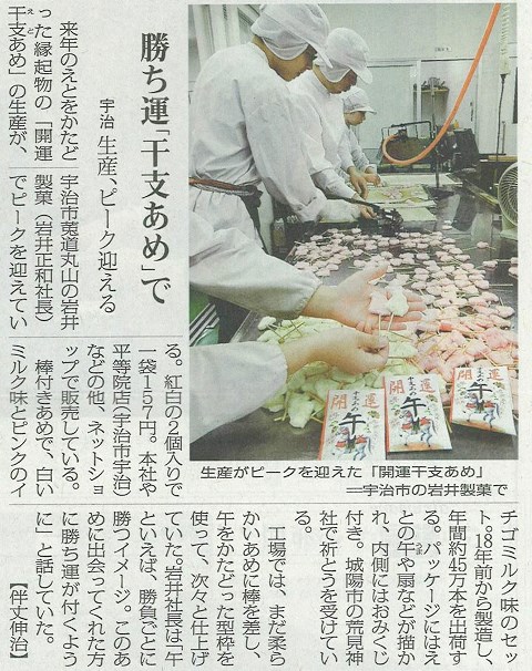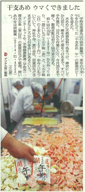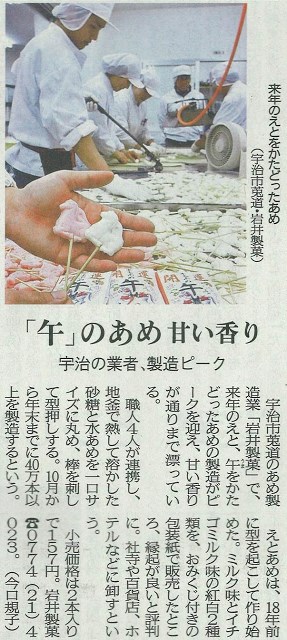 | 毎日新聞・京都新聞・朝日新聞 | 開運干支飴(午)が紹介されました。