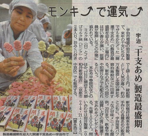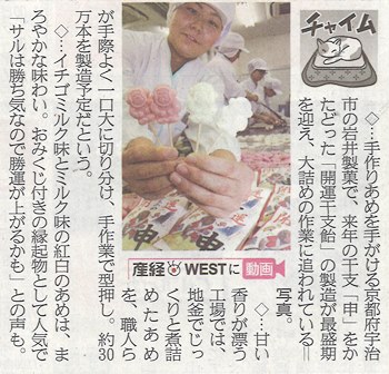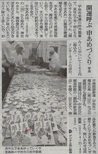 | 産経新聞、朝日新聞、毎日新聞 | 「開運干支飴(申)」を紹介