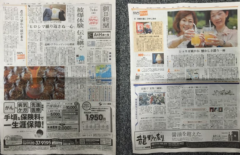 | 朝日新聞夕刊(7.4) | ひやしあめが1面トップと3面に掲載されてます。