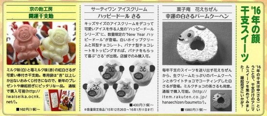 | エンタミクス(2016年2月号) | アニマルスイーツ大図鑑のコーナーで「開運干支飴(申)」を紹介