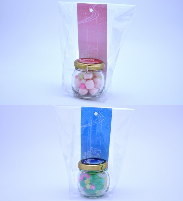 七夕の空を模したはんなり美味しい京飴と、星を模した金平糖をビンに詰め込み星いっぱいの天の川をイメージいたしました。 織姫をイメージしたピンクの短冊にはふんわり甘酸っぱい苺ミルク、彦星をイメージした青の短冊には後味さっぱりサイダーが入っております。 ビンについている飾り紐は、一緒に付いている短冊に結んで飾れるようになっております。 子供会や七夕イベント、ちょっとした季節のお土産にも最適。