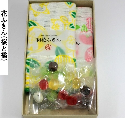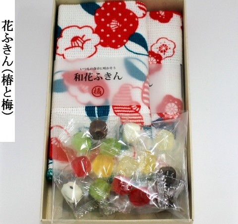 綿100%の日本製の花ふきんは「椿と梅」「桜と橘」からお選び頂けます。