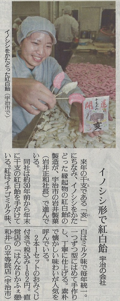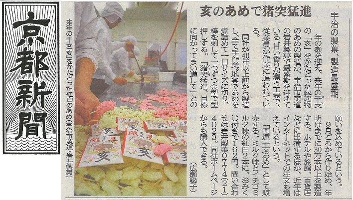 | 京都新聞にて「開運干支飴【亥】」が掲載されました。 |