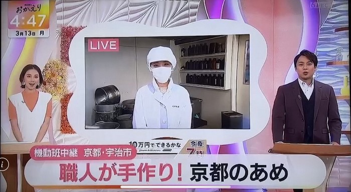 | 4月3日、NHK京都放送局「ニュース630 京いちにち」にて京飴づくり体験教室が紹介 |