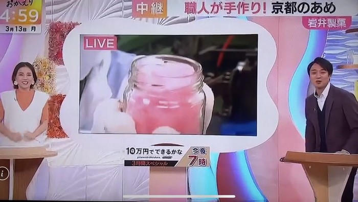 | 3月13日 朝日放送「newsおかえり」にて苺ミルク飴の製造が生中継 |