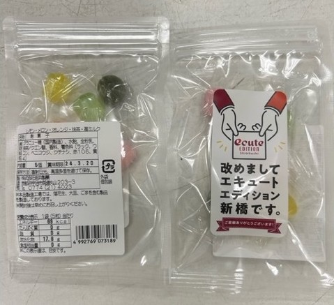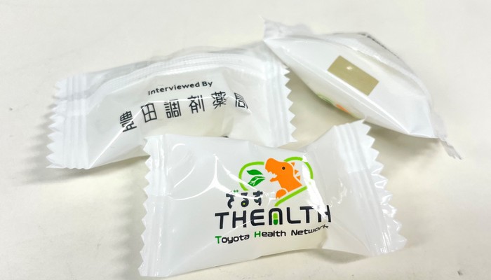 調剤薬局様への販促物 オリジナルのピロフィルムを作成。中身は「塩・苺みるく・ゆず・べっこう」の4種類になります。