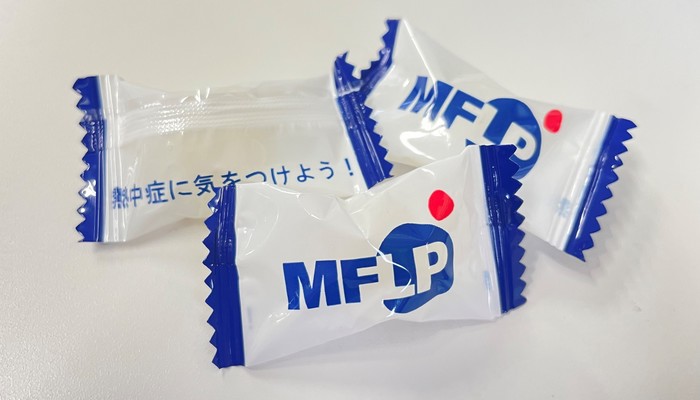 顧客への販促物 フィルムの中には塩飴を包んでおります。暑い日にぴったりな飴になっております。