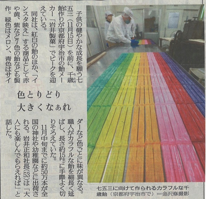 11月03日、産経新聞にて千歳飴が紹介されました。