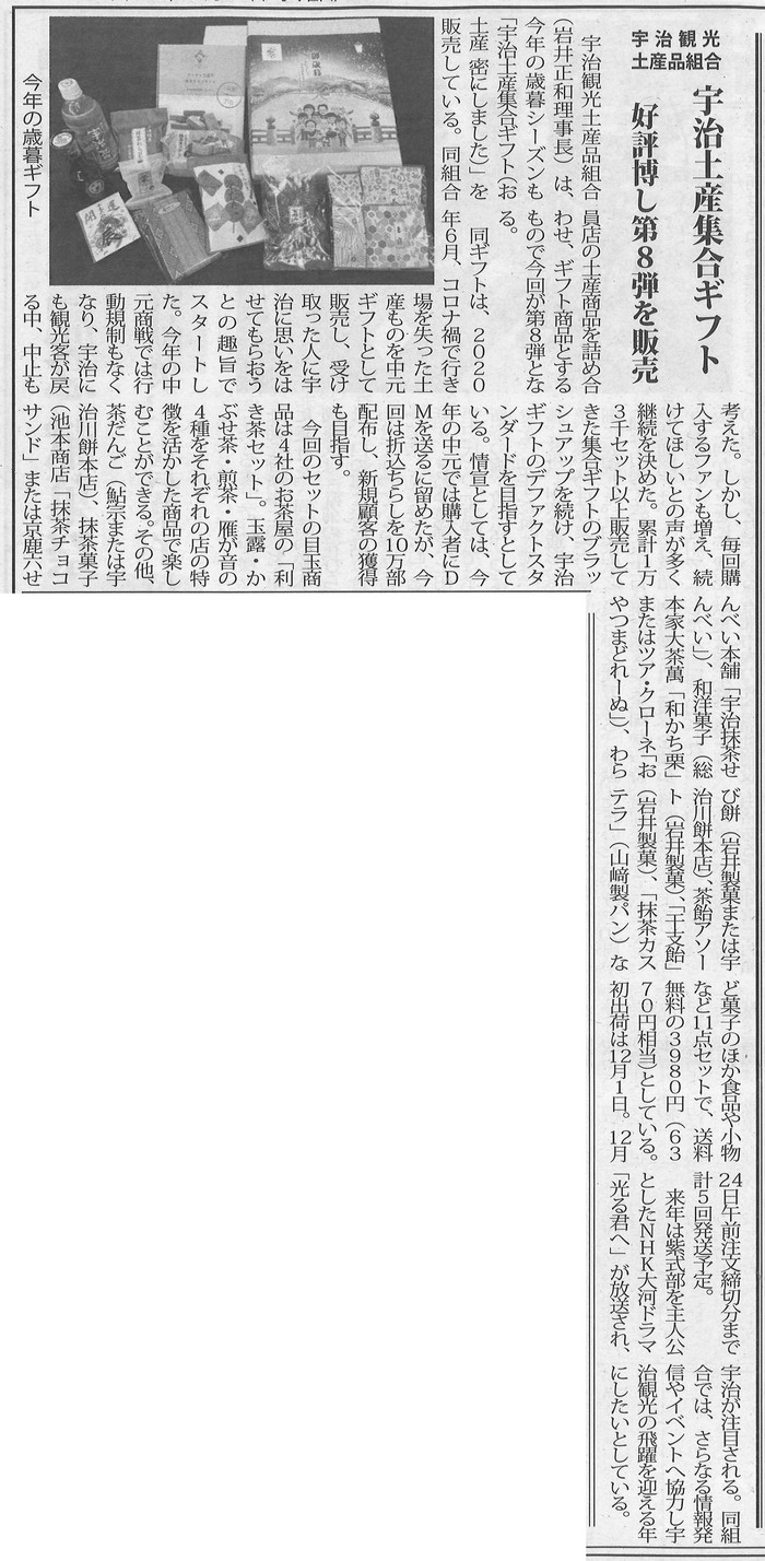 11月26日 朝日新聞にて宇治観光土産品組合による集合ギフト(第8弾)が紹介されました。