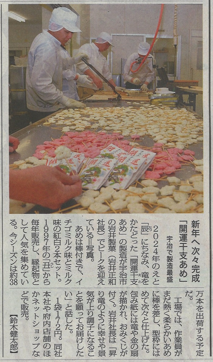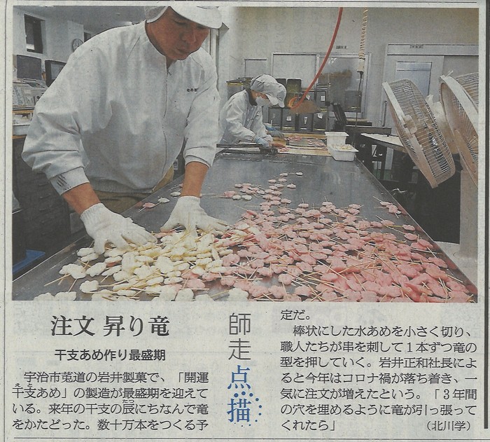 12月20日 毎日新聞にて岩井製菓の干支飴づくりが掲載されました。