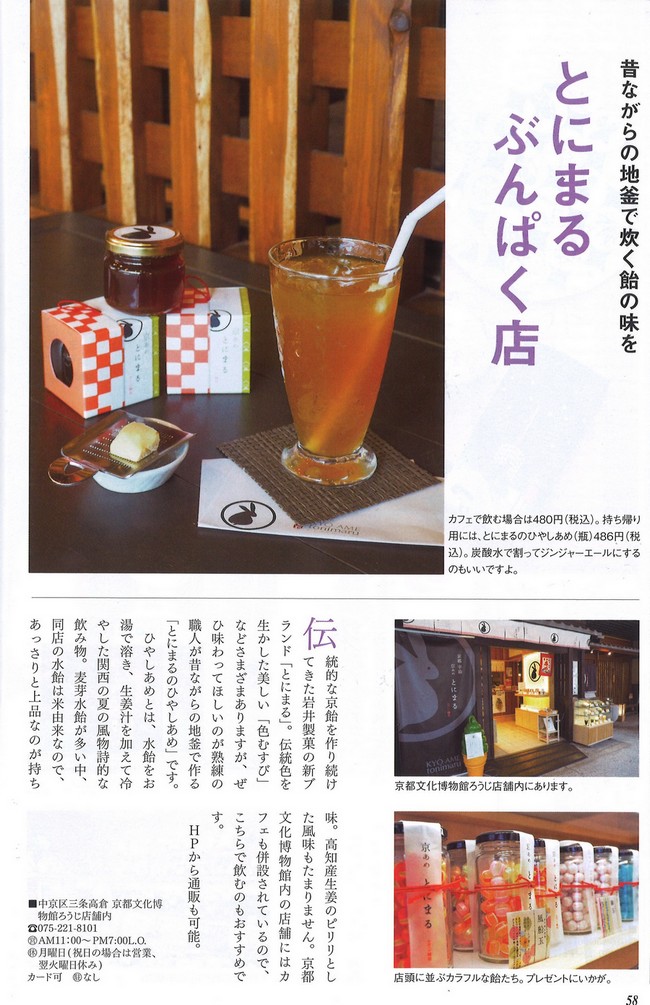 月刊京都7月号にて、とにまるぶんぱく店の「ひやしあめ」が紹介されました。