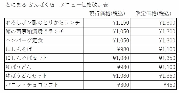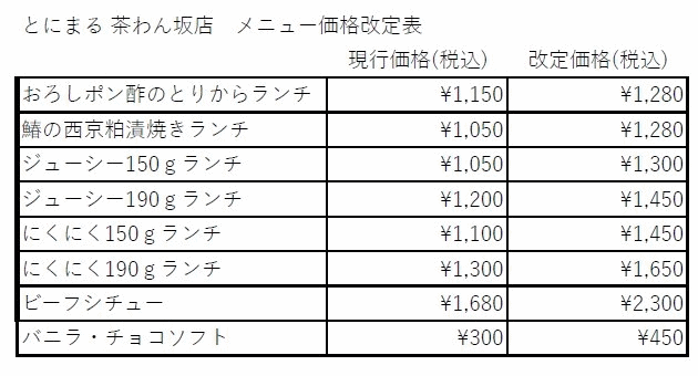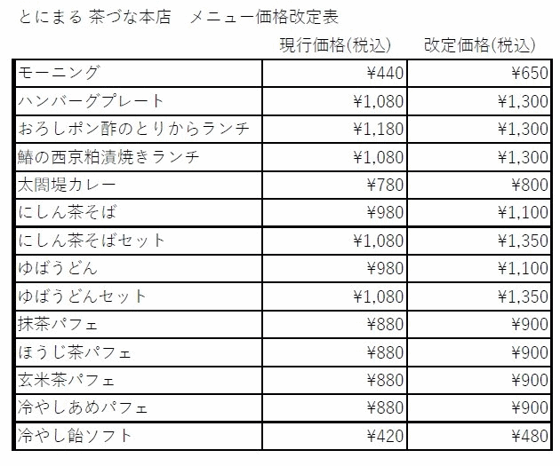 7月21日から当社店舗のメニュー価格の一部を改定を行います。