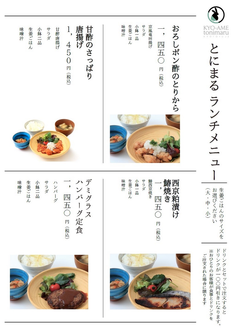 また、ランチメニューもありお昼には賑わいも見せております。勿論、京あめの販売スペース併設いたしております。