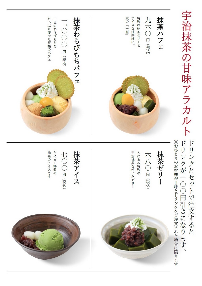 そして本場宇治抹茶のスイーツを軸に多数のスイーツを提供。
